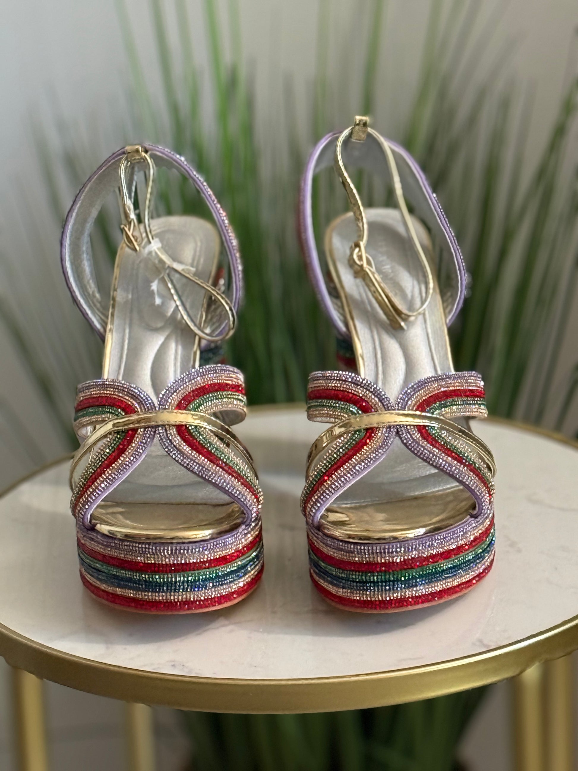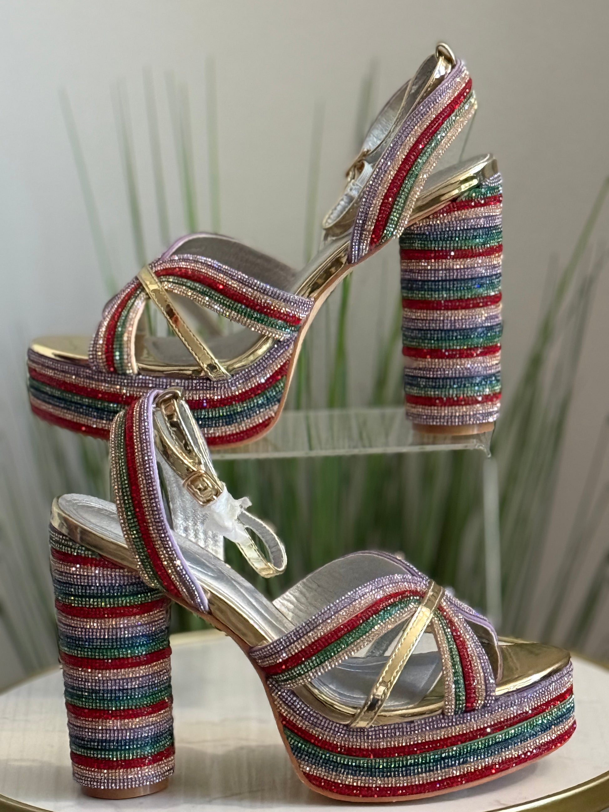 #235 Multicolor Rhinestone Platform Heels