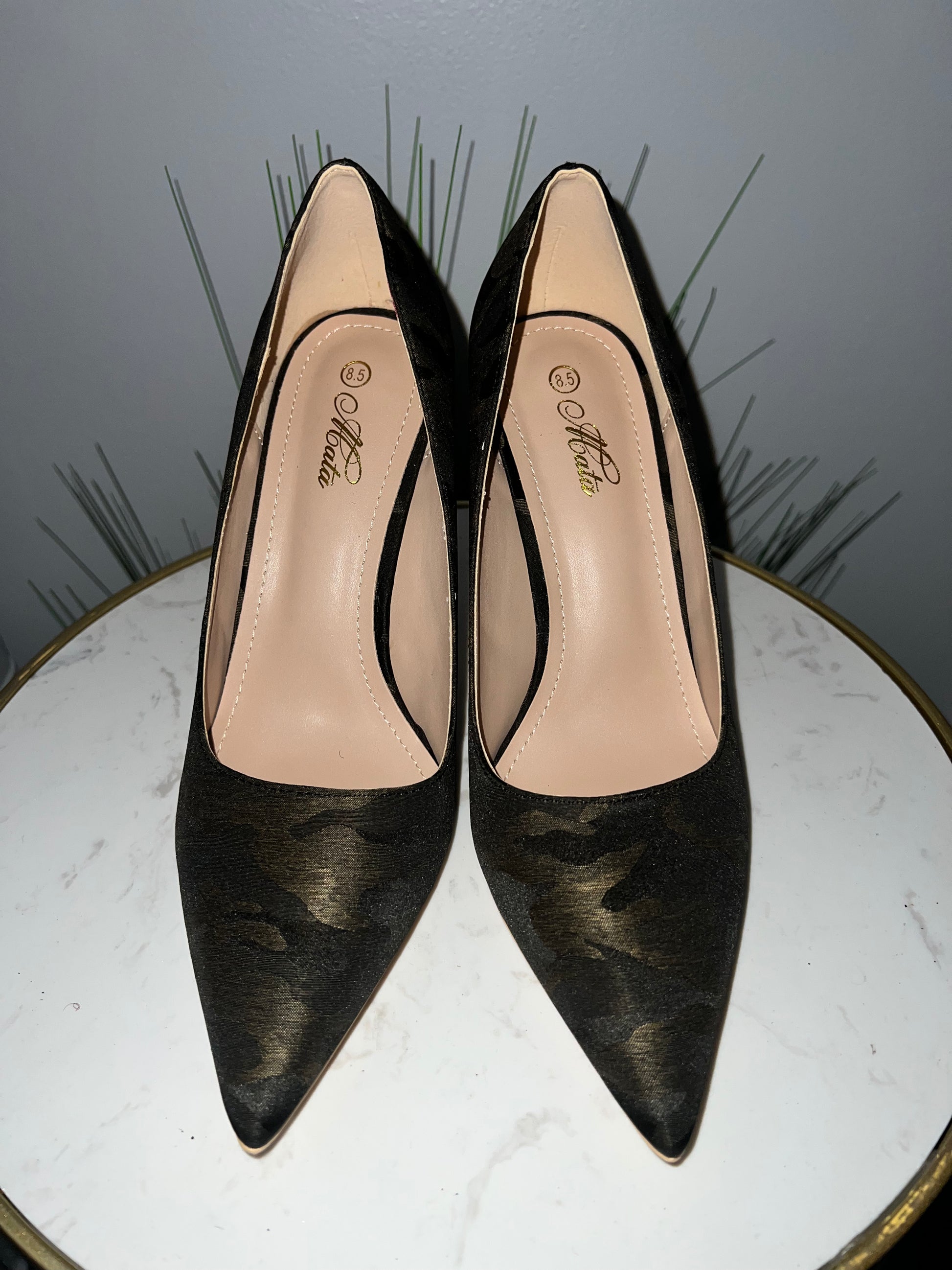Step into style and stand out with our Camilla Pump! This 3.75 inch pointy toe pump adds a touch of daring to any outfit with its camo print. Perfect for adding some excitement and personality to your wardrobe!